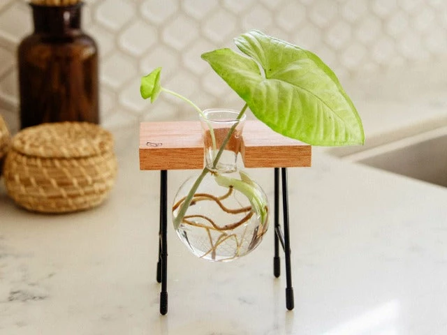 The Fleur propagation station is a bubbly and a welcomed addition to any space in need of a little greenery! She pairs perfectly with cuttings like the Fiddle Leaf Fig or Heartleaf Philodendron.