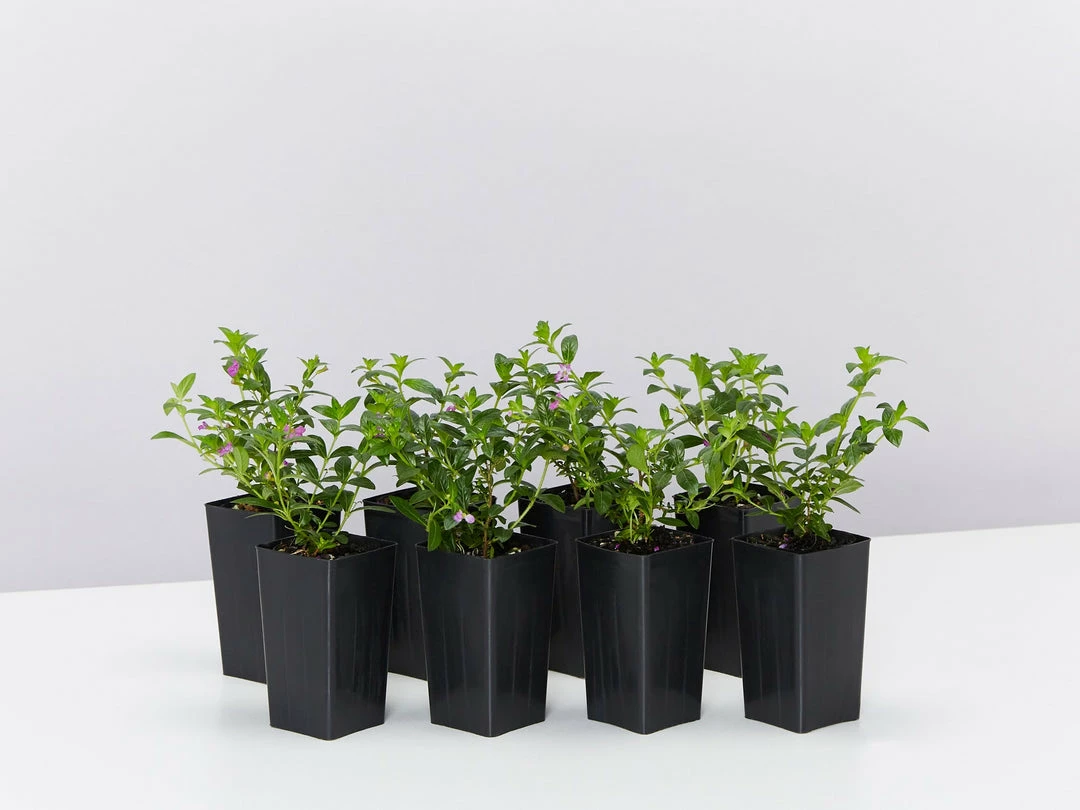 Cuphea hyssopifolia – Purple, also known as “False Heather” is a small, evergreen, fast growing shrub with bright green glossy leaves and produces dainty purple flowers year-round. Tolerating full sun to semi-shade, it is a very hardy plant, ideal as a low hedge, for garden borders, in rockeries or in pots. They respond well to light trimming.