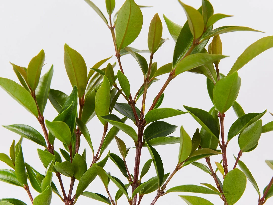 Baby Boomer is densely packed with leaves but it is compact so doesn’t get out of hand. This one is a favourite for low hedging and container planting with its glossy mid-green leaves that emerge bronze. In Spring it throws up fluffy white flowers which turn into berries for the birds.