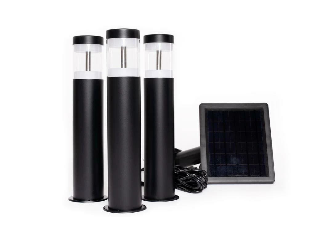 These cool white Solar Garden Path Lights emit a vivid white tone, making any outdoor setting pop.This product features a solar panel separate from the three solar bollard lights, allowing the panel to be placed to receive optimum sunlight. The bollards themselves can then be used in any light situation, dim, sunny or otherwise, to perfectly illuminate feature planting or outdoor areas.