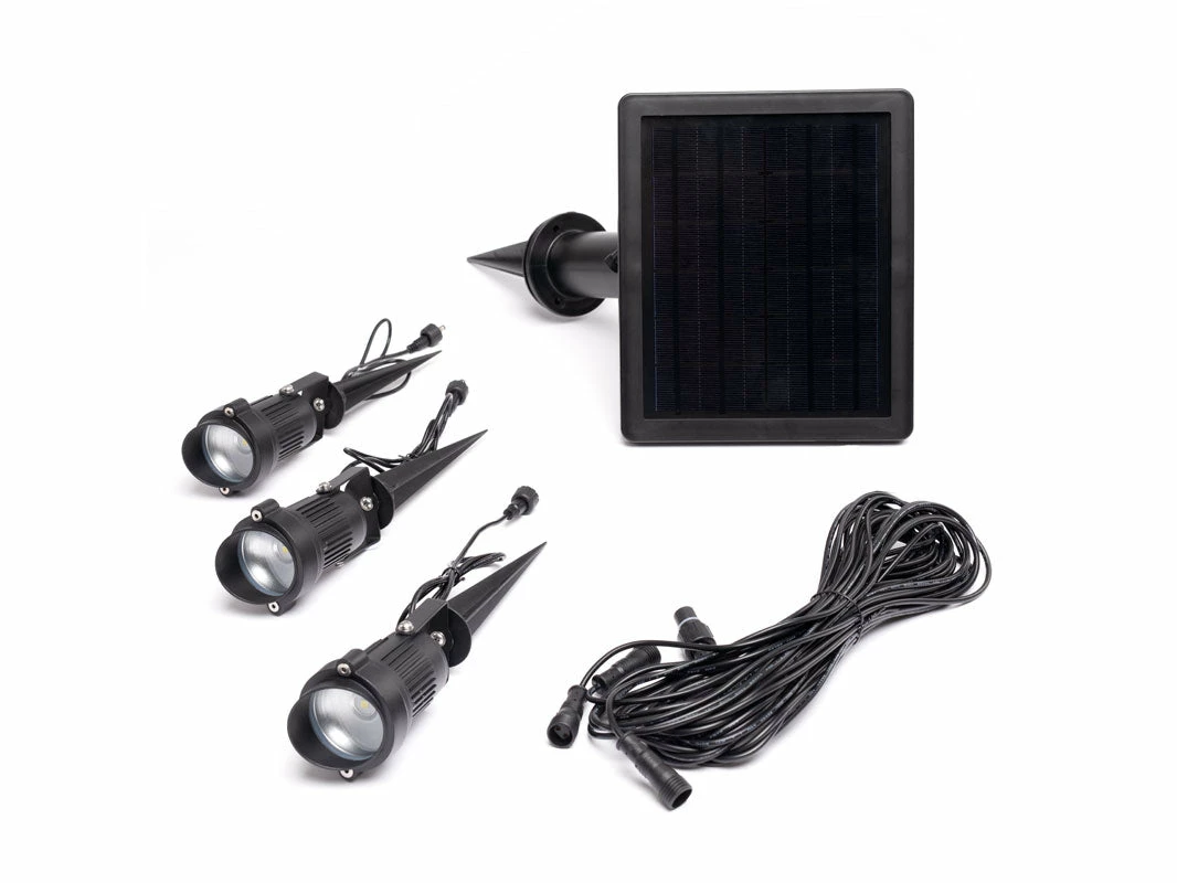 Light up the night with this three-pack of solar spotlights! Warm white lights emit a pale-yellow tone, bringing a rustic vibe to your outdoor space.