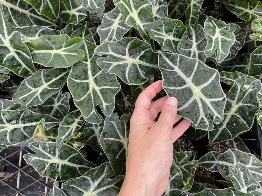 Alocasia Dwarf Amazonica is a smaller, more compact Elephants Ear that will only get to 30cm tall. This little beauty has large dark green leaves and raised white veins in the classic elephant’s ear shape. If you want to bring a bit of jungle into your life, then a fancy Elephant ear plant will surley do the trick!