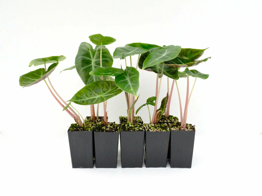 Alocasia are unusual plants with large patterned leaves sitting pretty on thin stems. You might know them better as Elephant’s Ear.