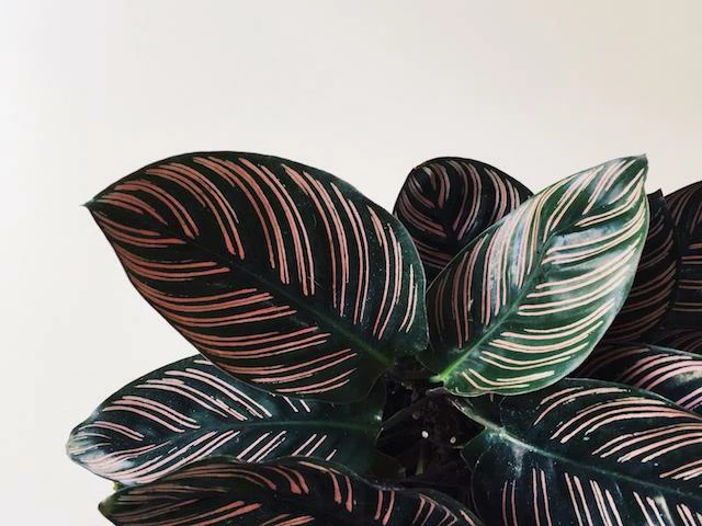 Calathea ornata Sanderiana! Most likely, you will fall for the prominent pink stripes that perfectly radiate from the centre of her glossy leaf, like a fishbone. To add to her uniqueness, the underside of her leaf has a beautiful reddish-purple colour. She is a perennial plant and part of the prayer-plants or the Maranta family.