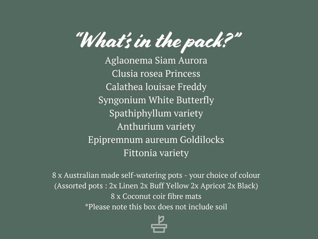 Is one potted houseplant just not cutting it? Move to the 8 pots + 8 plants combo pack! Set your plant parenting off on the right foot. We’ve picked the plants, all you have to do is choose your pot colours and buy a bag of soil!