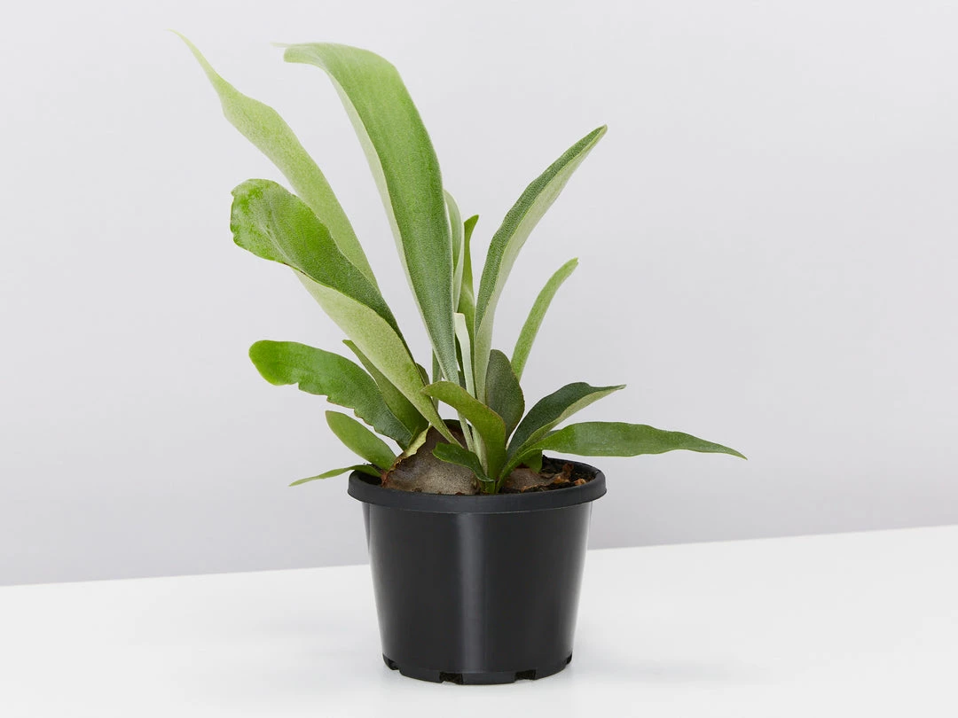Platycerium bifurcatum is an epic epiphytic fern with velvet soft light green almost grey leaves. It is commonly called Elkhorn fern and looks great as a feature indoor plant Â