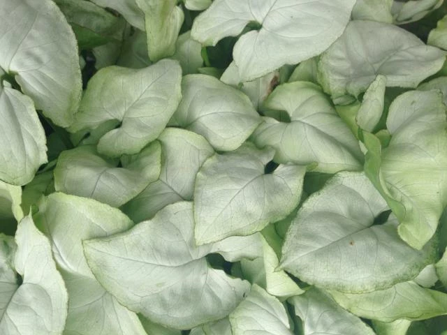 Syngonium Moonshine is a standout beauty ready to impress with its almost white symmetrical leaves and light green margins – it’s impossible to ignore this glowing stunner because the bushy bright foliage lights up any dull space.