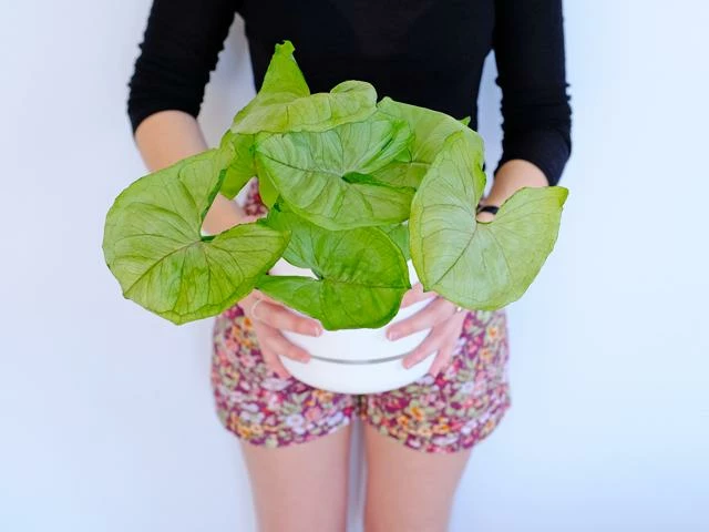 She’s a stunning indoor or shady outdoor plant that brightens up the corners of your home, especially if you let the compact pinky cascading foliage trail down a dull bookcase or hang near a window. If you’re planting up a few Syngoniums together she creates great contrast.