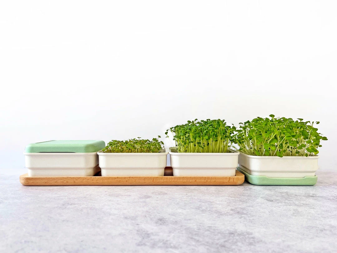 A continuous supply of microgreens! Yipee. Create your own mini microgreen farm in your home with this kitchen-bench-top-worthy micro grow kit that’ll keep the greens comin’