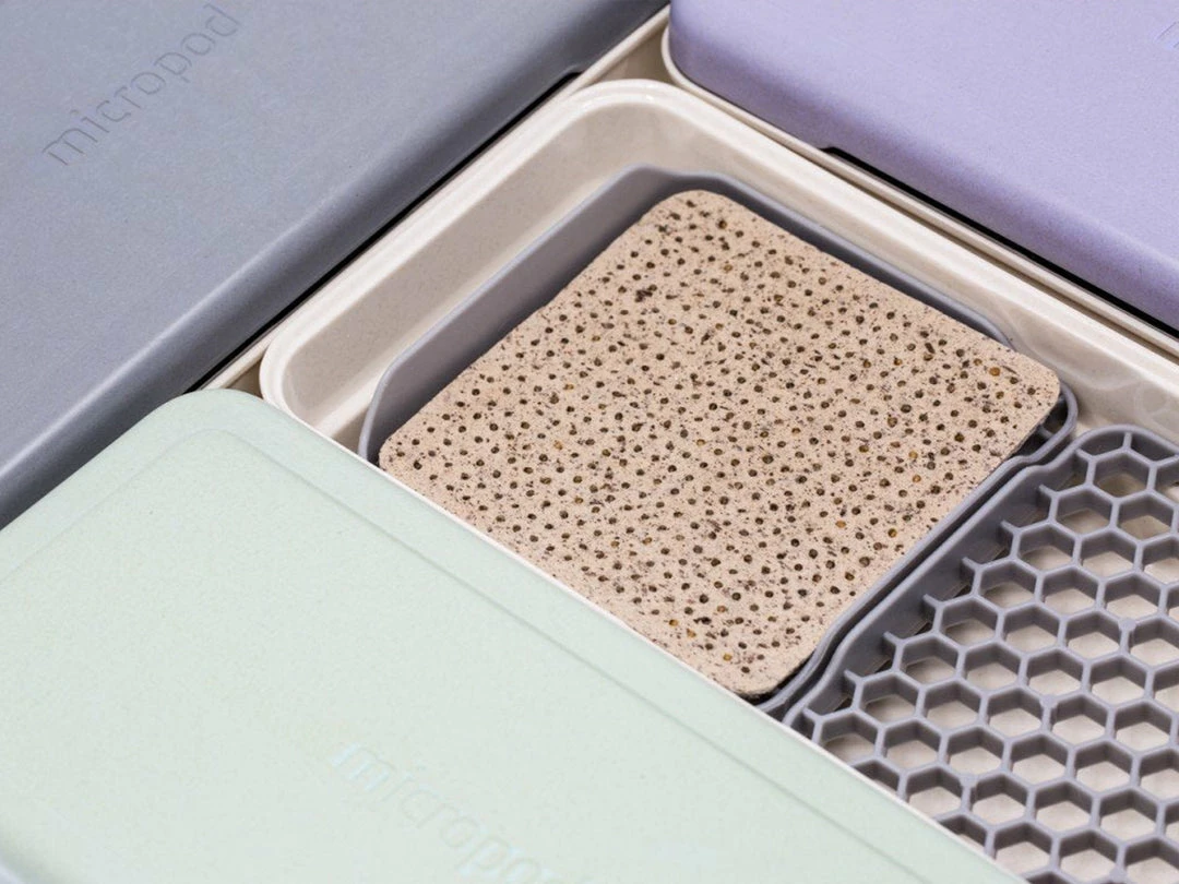 The micropod Starter Kit blends functionality with fancy aesthetics. Designed to sit on a windowsill or in a fine, warm sunny position, you can enjoy fresh, homegrown microgreens in less than two weeks. Just by adding water! Rest easy knowing the food you’re eating is free from GMOs, pesticides and herbicides.
