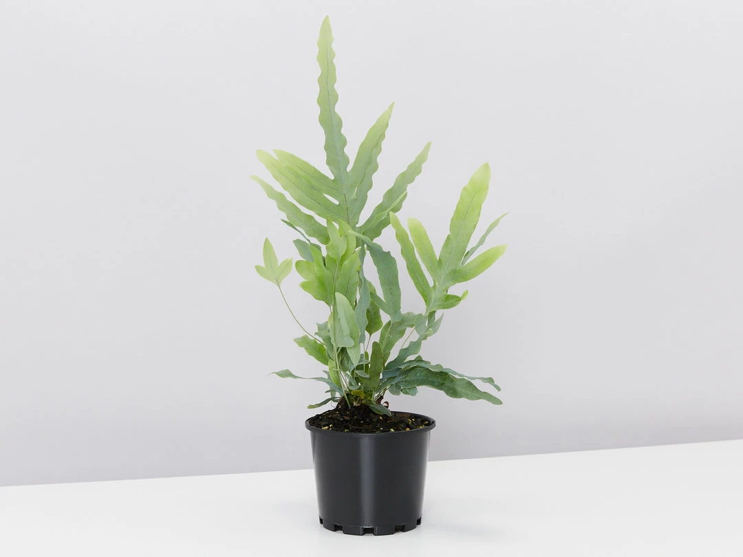 Phlebodium-blue-star The Blue Star Fern is an upright beauty, wavy, blue-green foliage on slender, hairy stems! Alrighty, it sounds weird but trust us, she is a beauty. She can tolerate lower-light conditions and relatively easy-care, making her an excellent pick for beginners and experienced fern diggers alike!