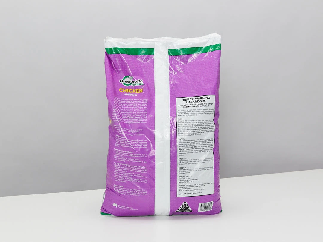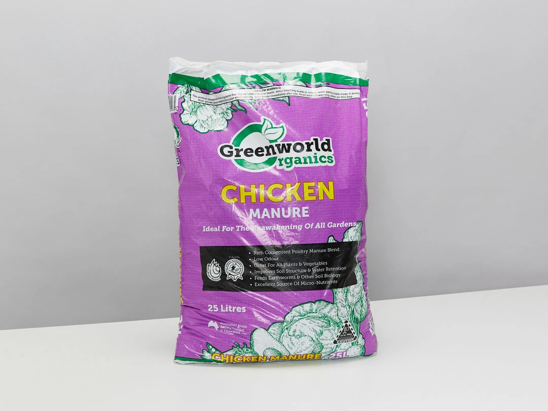 Greenworld Organics Chicken Manure is a rich composted chicken manure perfect for all plants and vegetables. Hmm, we can smell it now! It is an excellent organic matter, nutrient-dense mix and can be added to all soil types before planting or to recondition aka Jazz up the soil and supply your plants with some much-needed nutrients.