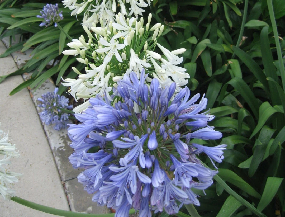 Agapanthus orientalis – blue is a clumping plant with strappy green leaves. Commonly known as Star of Bethlehem (flowering around Christmas time). The large head of mauve/blue flowers are arranged at the end of a tall stem and make a flamboyant statement during Summer. Agapanthus are tough plants well-suited to Australian conditions, needing little water once established.