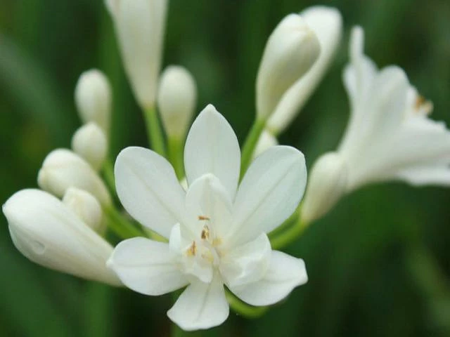 Agapanthus Africanus Snowball is one of the smallest white Agapanthus around. This little guy will fill up your border or pots with plenty of bright panache. He comes back year after year in the warm months with fancy short-stemmed white flowers and strappy green leaves that gently waft in the breeze.