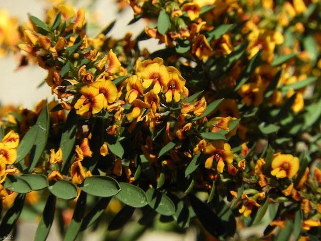 Eutaxia obovate is a beautiful fast growing native shrub perfect for adding colour to coastal gardens. Also known as the bacon and egg plant, its small lime green leaves make the perfect backdrop for the gorgeous pea shaped yellow and red flowers that cover the shrub in winter to early summer. Perfect as a border plant it is super hardy and low maintenance and will attract the birds and the bees.