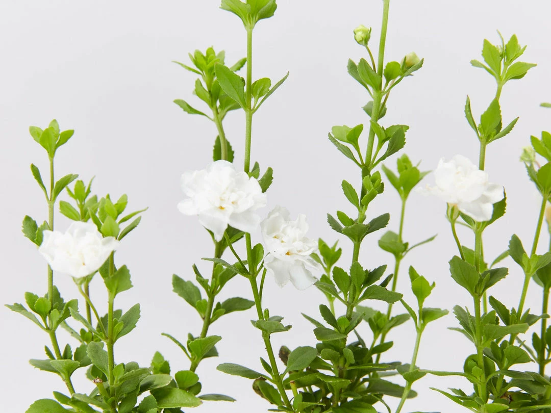 I’ve been a wishin’ and a hopin’ for a little filler plant for a moist, sun-filled garden. Introducing Bacopa scopia Double Snowball. She needs to have beautiful pure white flowers that look like mini roses and appear all summer long. Did you get all that?