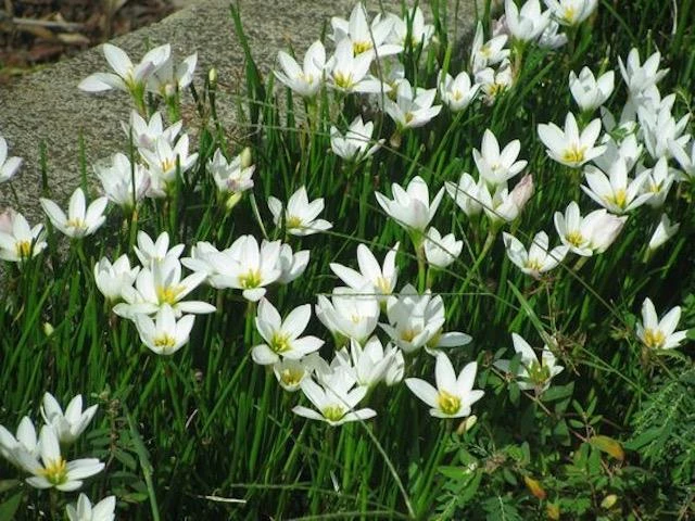 Zephyranthes Candida is the posh name for our gorgeous little Rain Lily. This lovely low ground cover looks like long glossy grass until it rains, and then white cup-shaped flowers pop out to enjoy the moisture. Beautiful white flowers will appear nearly all year round.