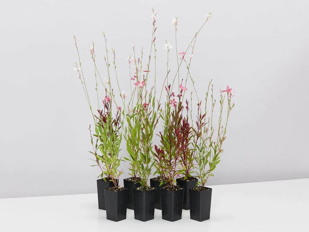 This pack is a pretty assortment of Gaura (Oenothera) and a must in any cottage garden. Full of pretty, soft flowers in white, pinks and reds, from afar these blooms look like prancing butterflies. Mass plant her as a border or pot them all together for a colourful feature.