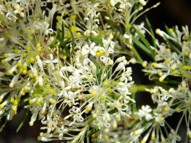 Grevillea curviloba is also known as Curved Leaf Grevillea and is one of the best flowering native groundcovers around. It has really fine green, needle-like foliage and in Spring it produces masses of cinnamon-scented white flowers which attracts native birds and bees. In the right spot, it is fast-growing and spreads to around three metres. This hardy groundcover is perfect for covering rocky slopes, cascading over a retaining wall or as a low growing border plant.