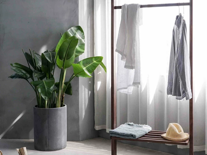 Leaves measure around 50cms and it grows to an overall height of 1.5 metres. This makes it great as a mid-height plant which is tricky to find. It’ll survive on low water levels but will need a regular watering commitment for the first 12 weeks while its roots are sent out.