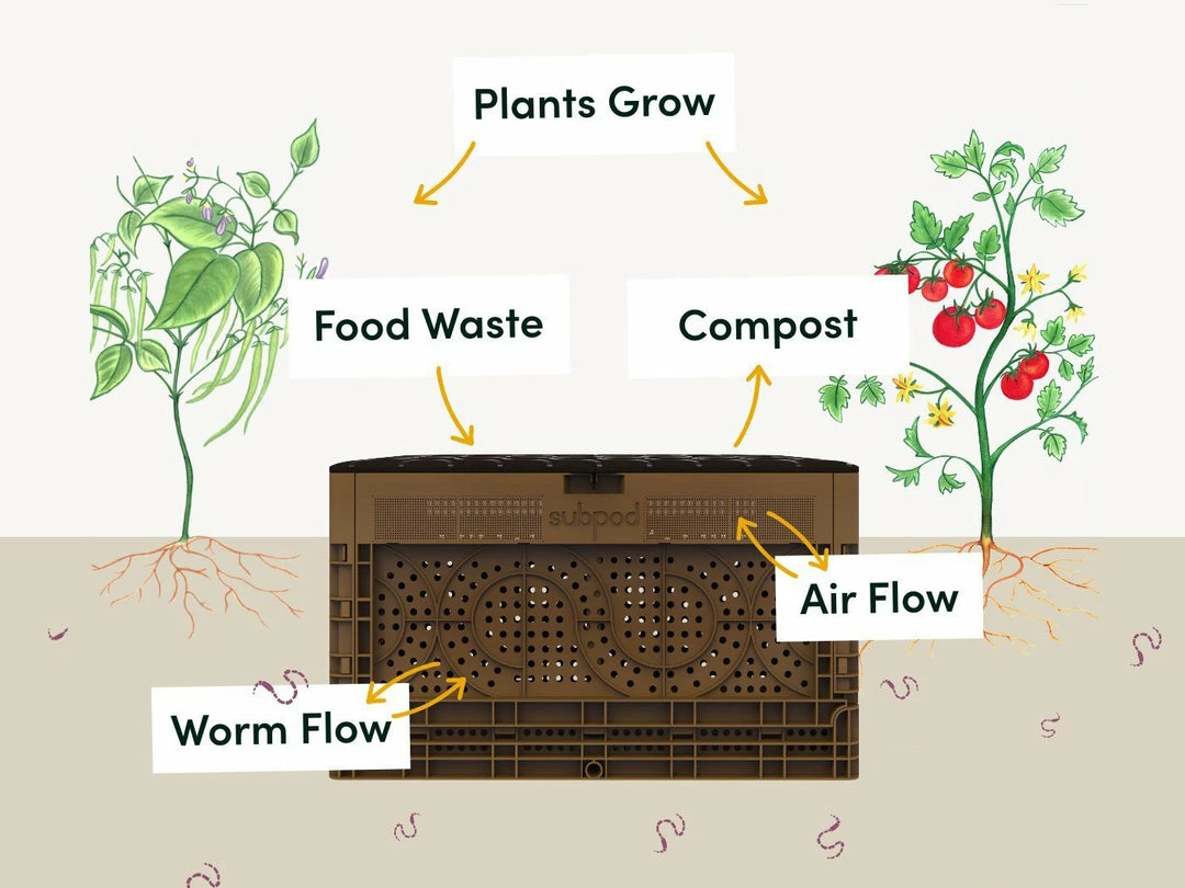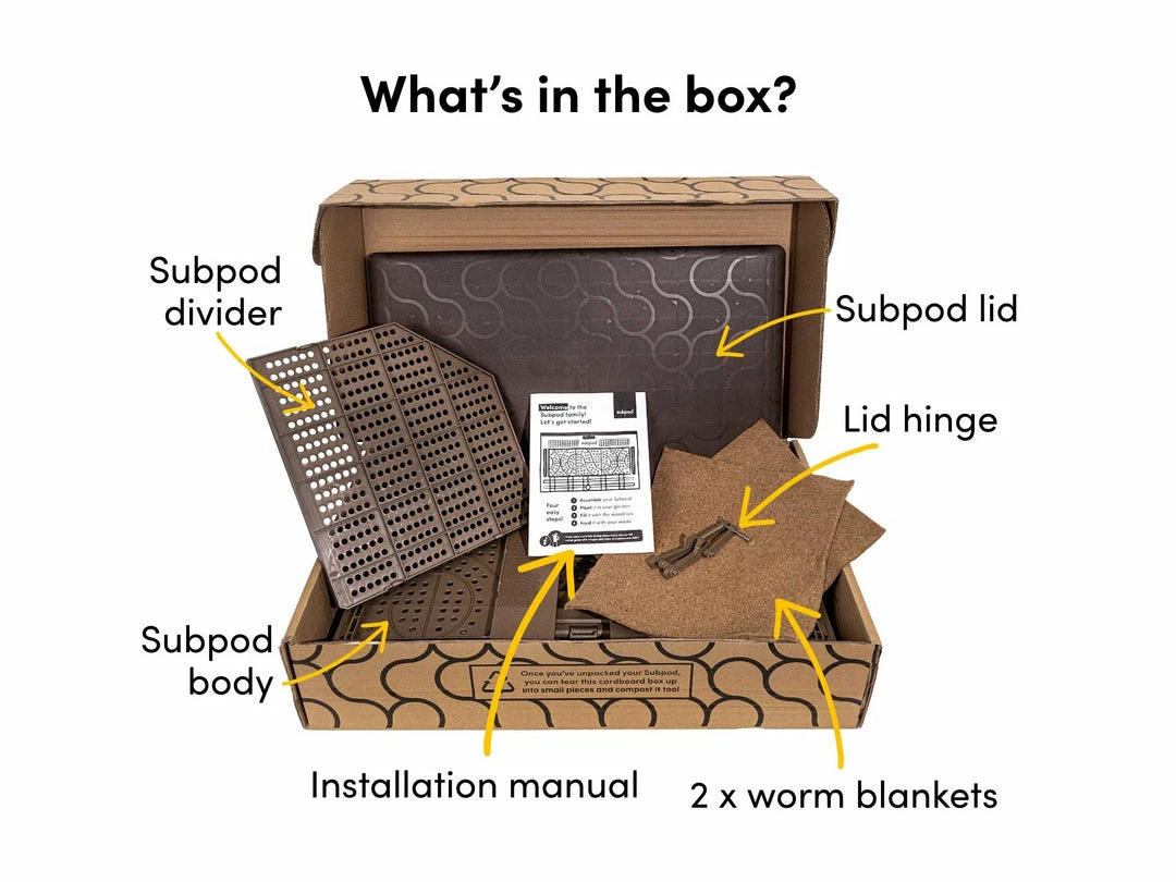 Smell free, mess free, pest free and stress free, Subpod is the answer to all your composting questions! This system is a gamechanger in the composting world, combining function and style, one Subpod will compost a family of 4’s food waste all year round!