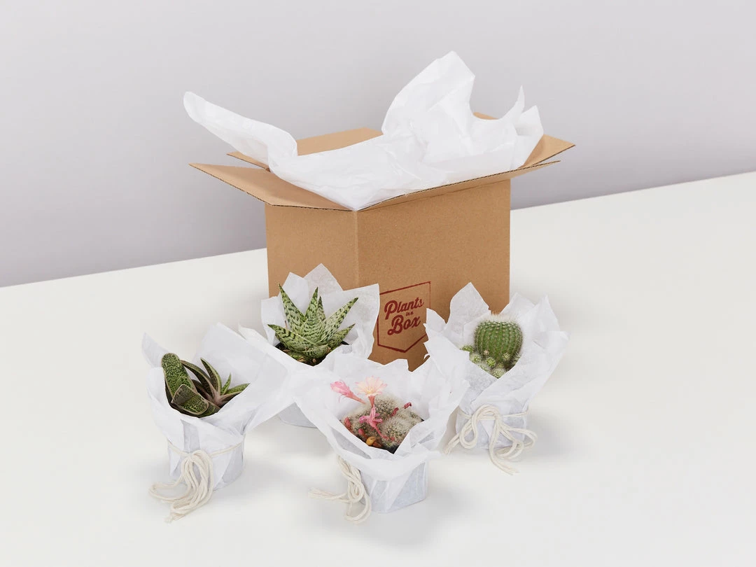 Noticeable and easy-care, this box delivers a succulent mix of cactus and tough sculptural plants that will survive those days… (or weeks) you, oops! forget to water them. Chuck these guys in individual pots, in a planter together, or create your own desert dream garden.