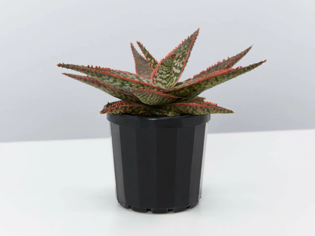 Aloe Christmas Cracker is a succulent with deep green leaves and stripes of dark vibrant red raised markings. This succulent is very hardy and drought tolerant and looks great in mass planting or as a feature plant in a pot. It’s one of our favourites.