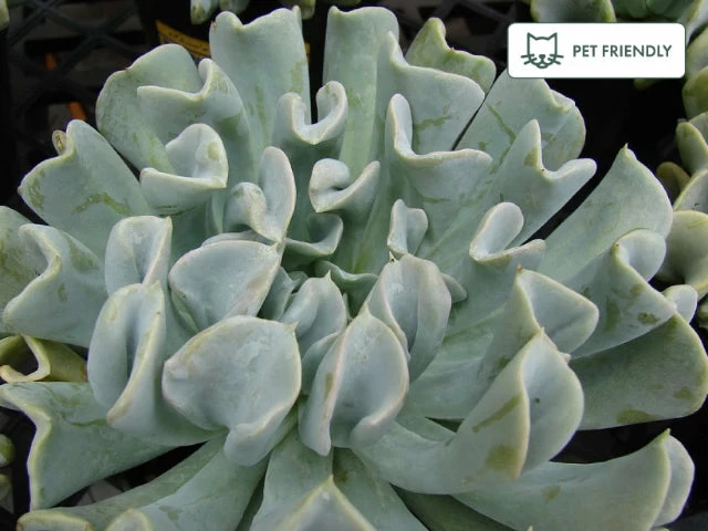 Echeveria Topsy Turvy is an award winning, fast growing, evergreen succulent. The Topsy Turvy has beautiful powdery blue-green /silver-grey spoon shaped leaves, stemless rosettes, often develops pink tips.