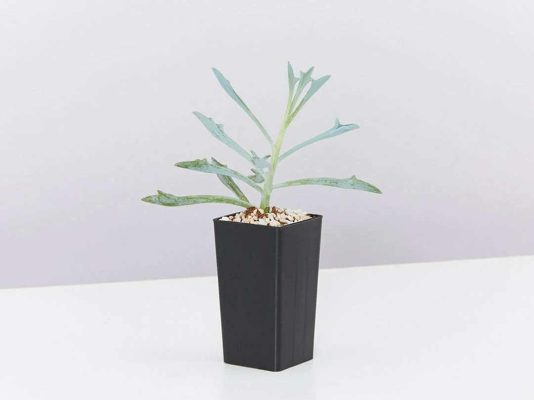 Senecio Trident Blue PBR is a fast, low growing groundcover that has powdery blue foliage and will bring colour and texture to your garden. Super popular with landscape architects the Trident Blue is a low maintenance, drought and frost tolerant succulent that can handle full sun. If you have a space in the sun where not much else will grow give this little guy a go and you’ll be sure to be rewarded. Â