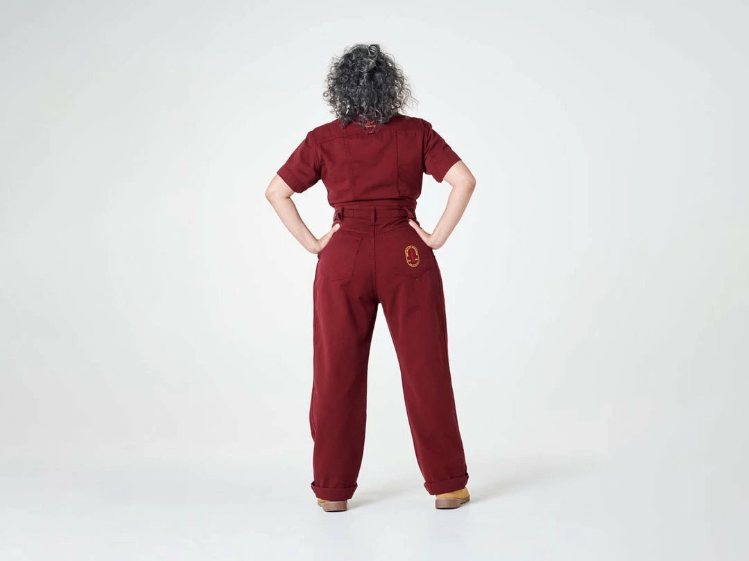 A classic, comfortable pant with a bum fit that Dolly Parton herself would approve of. Our Relaxed Work Pant is now available in our Oxblood colourway. Hardwearing enough to stand up on site and simple enough to wear out. Work in it, or werk it.