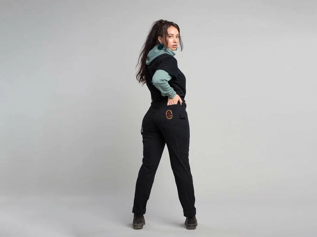 These pants are the answer to the working woman’s slim pant needs. Hugging the ass and tapering down the leg. With a double-layered knee, two leg pockets and a hammer holster, this is function and style. Comfortable and flattering whilst still being durable is a CRAZY achievement.