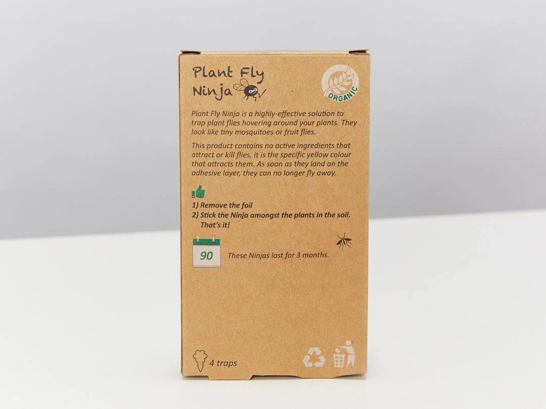 Meet your new security guards, “Plant Fly Ninjas”. It’s a 4 pack of sticky traps ideal for catching pesky fungal gnats. A green pest control alternative lasts for up to three months and is an effective and simple solution for catching flying pests. Pesky fungal gnats “get lost”.