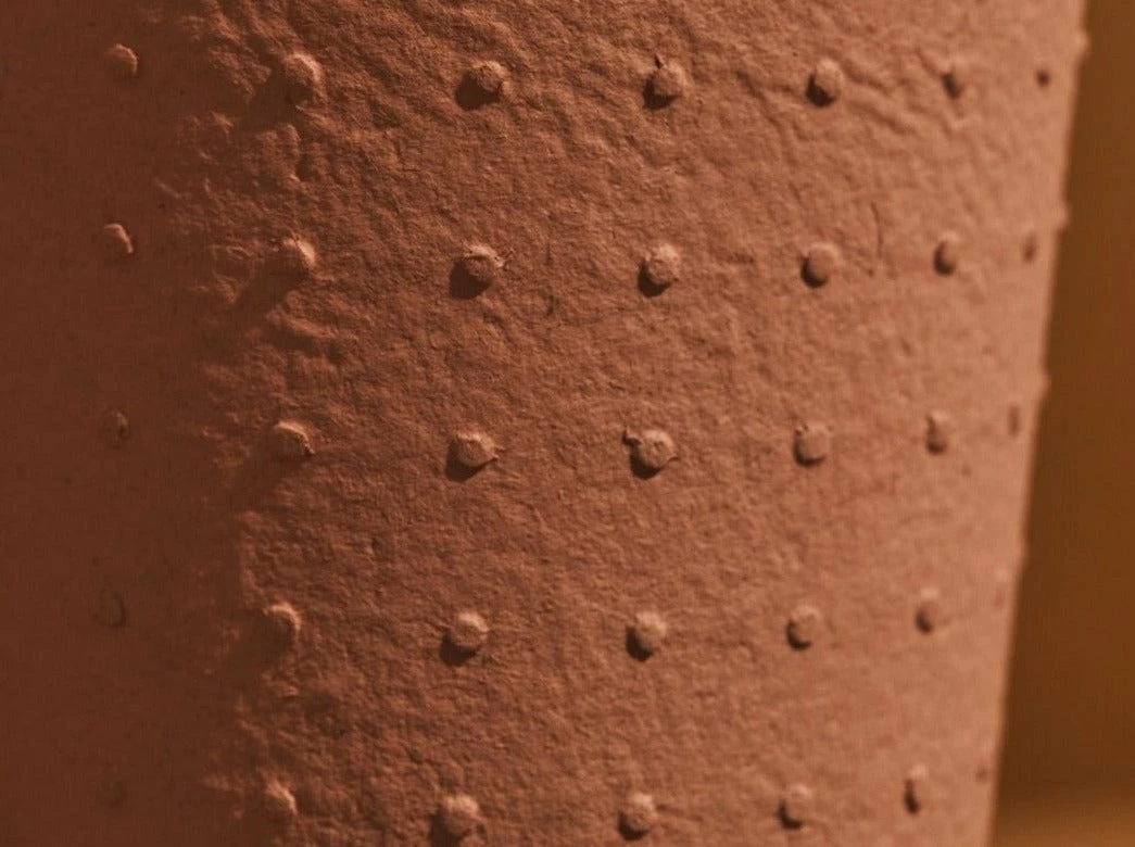 Meet Dotty the conical pot that is embossed with delicate patterns of dots in soft tones of pale blush, antique white and sage green.