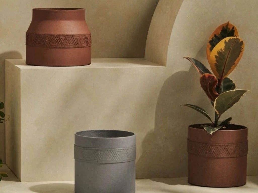 The Cylinder Pot with Kilima design in Light Grey colour is a lightweight yet tough pot holder. If you use it to house your plants you can place a nursery pot directly inside.