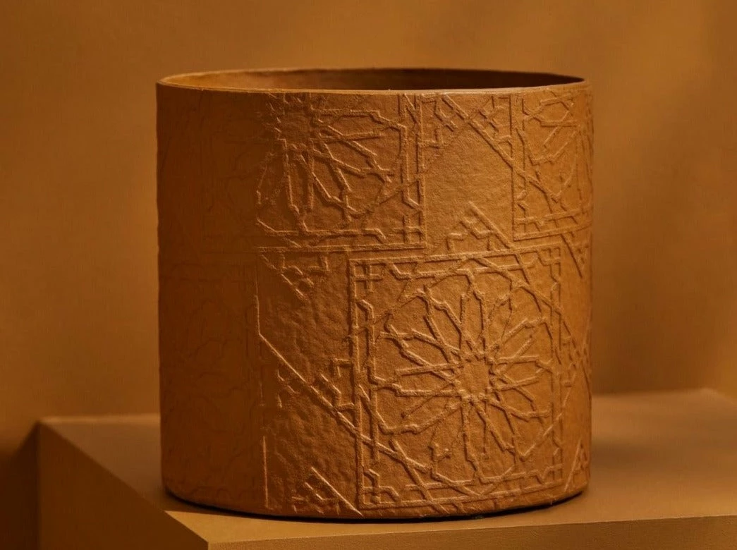 The Cylinder Pot with Diwali design in Ochre colour is a lightweight yet tough pot holder or vase. If you use it to house your plants you can place a nursery pot directly inside.