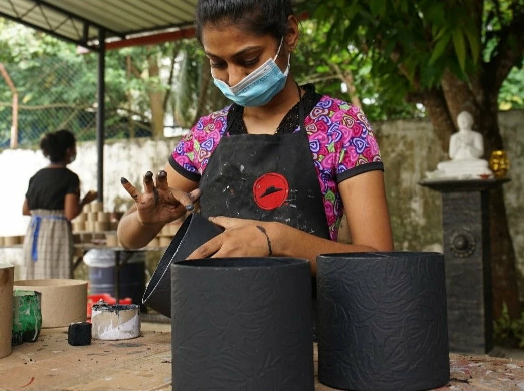 Each pot is handcrafted in a fair trade working environment by women artisans in Sri Lanka. In addition to looking great, these pots are sustainably made from recyclable materials with zero-waste production.